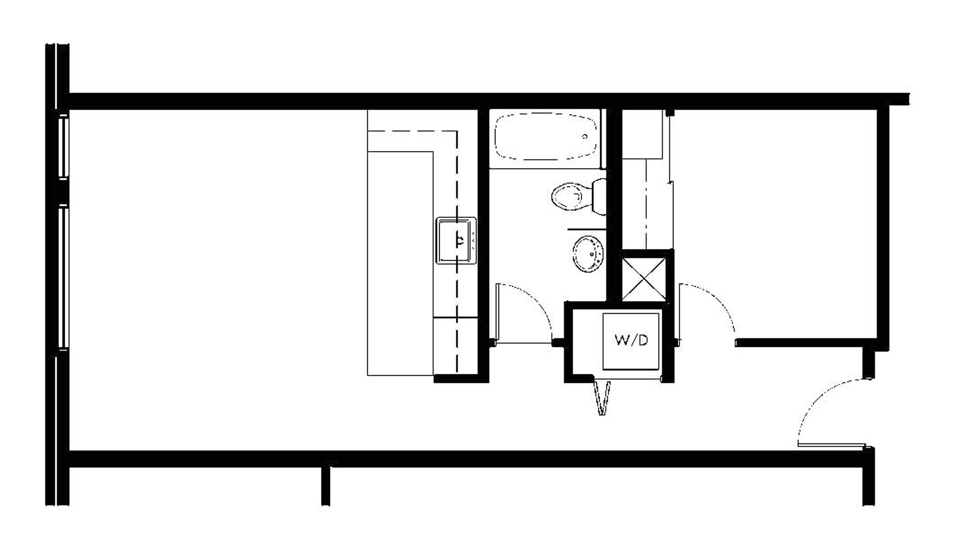 At 581 square feet, this studio + den apartment really lives like a 1 bedroom.